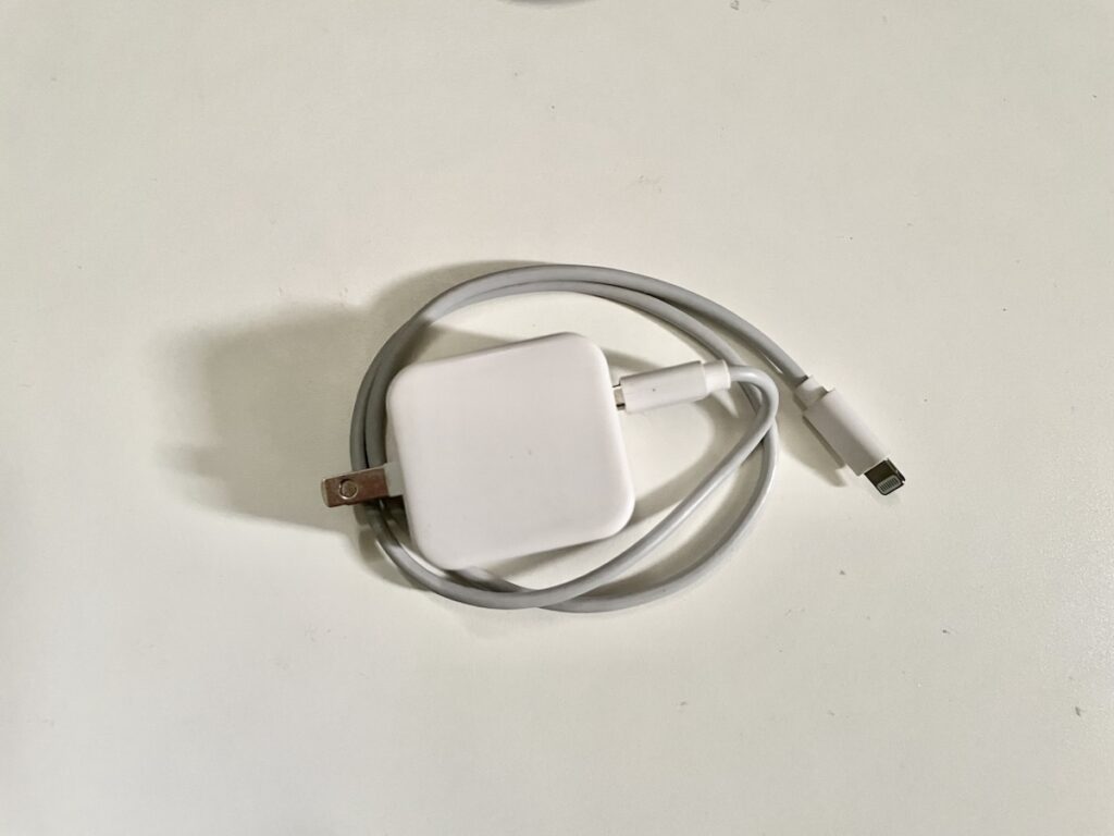 カフェなどでコンセントのついている席でiPhoneを充電する時のために、無印良品の急速充電器も持ち運んでいる。